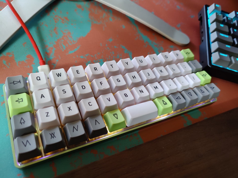 We saw this setup on the Drop website and we loved the simplicity and how clean the SA Snow Caps from PimpMyKeyboard looked with the white/grey theme. The single teal/green escape key is a good touch for a pop of color and they probably bought that single keycaps seperately from the keycap set. If you're interested in this keyset, click the link and below and make sure to choose either the text/icon modifiers and an alpha set that you want for your keyboard.